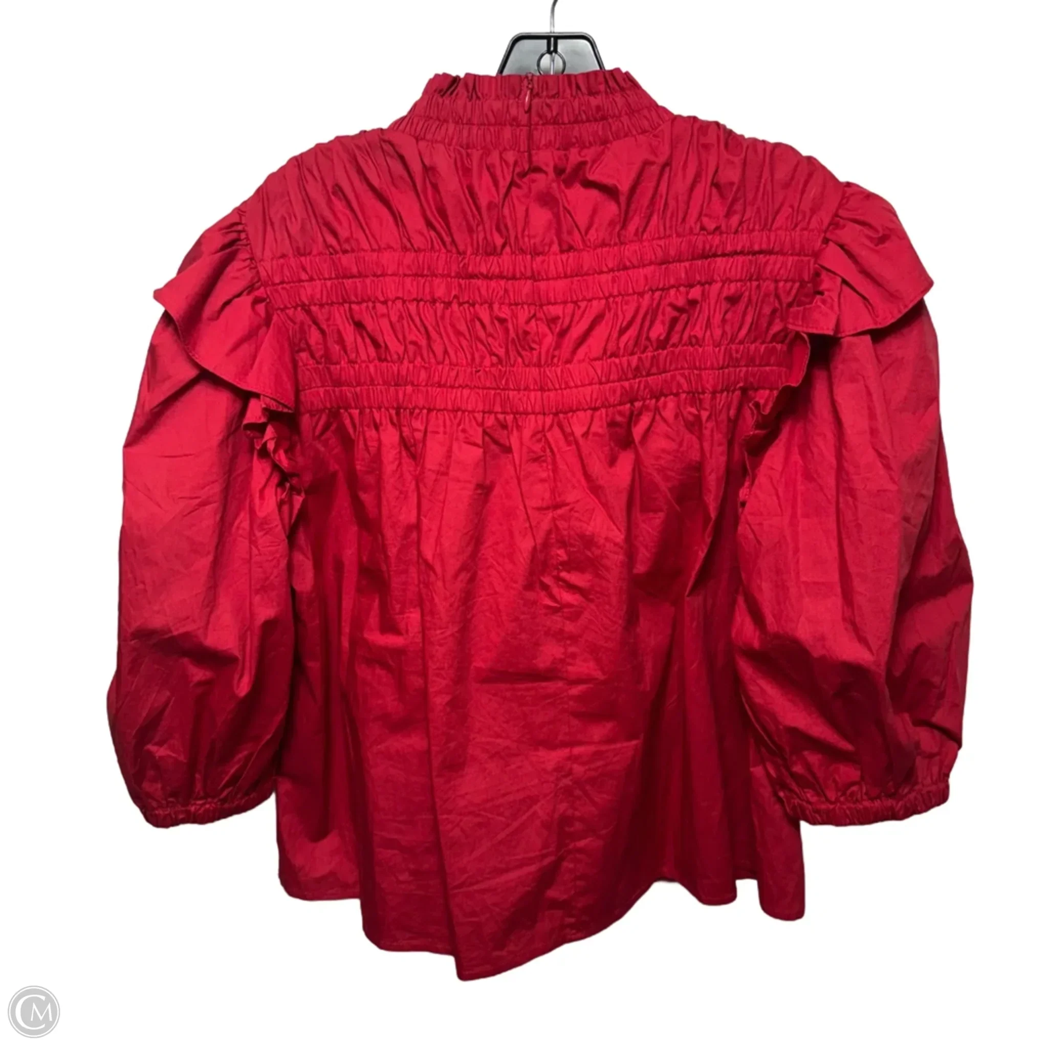 Smocked Flutter Sleeve Top By Aureum In Red, Size: M